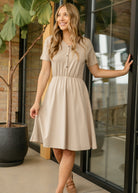 The Ella Cinched Waist Midi Dress blends charm and comfort with effortless style. Featuring a flattering cinched waist and sewn-shut buttons to prevent gaping, it creates a feminine silhouette with ease. Soft, breathable fabric, short sleeves, and hidden pockets make it perfect for any occasion brunch to church and everything in between. Style it casual or dress it up for an easy on the go style!