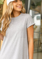 The Finley T-Shirt Midi Dress is an Inherit Design that has fabric that lets this style breath, stretch and move with you though your day and night! The rolled sleeve elevate the dress and that front pocket on the left side is of course adorable. Don't fear, we didn't leave the hidden side pockets out either, your hands will be oh-so-happy!! No slit in this dress, so you'll be confidently covered and ready to relax or run those errands! This elevated casual dress comes in sizes XS-4XL with plus sizes available! Use this comfy dress to create an outfit that pairs perfectly with sneakers!