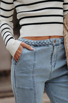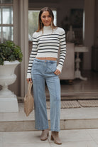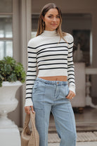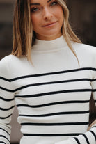Cream and Black Striped Mock Neck Top - FINAL SALE